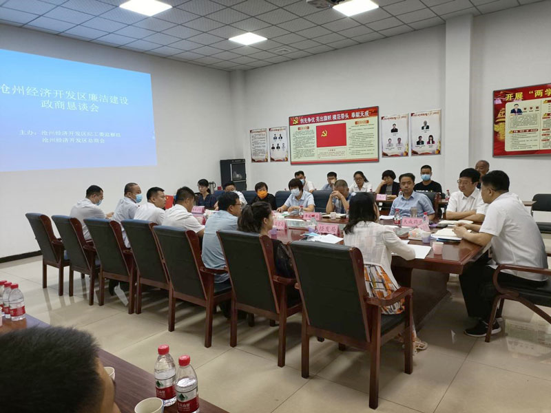 9月15日,沧州经济开发区纪工委监察组、区总商会在荣耀体育官方网站,荣耀体育jiangnan(中国)组织召开了医药行业廉洁建设政商恳谈会,区党工委委员,纪工委书记、监察组组长唐小明参加并讲话。