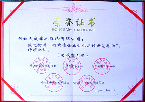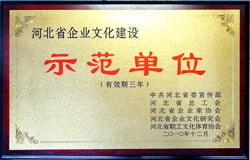为全面落实科学发展观,弘扬社会主义核心价值体系,充分发挥企业文化在提高企业管理水平、增强核心竞争能力、构建和谐劳动关系中的积极作用,由河北省宣传部、河北省总工会、河北省企业家协会发起,在全省范围内选树河北省企业文化示范单位及企业文化先进个人活动。近日,传来喜报,我公司荣获“河北省企业文化示范单位”称号,公司董事长兼总经理王振刚同志当选为“企业文化先进个人”。这是公司及董事长王振刚同志多年来坚持科学发展观、按照社会主义核心价值体系、培育积极向上的企业核心价值观、打造企业和职工共同愿景所做的不懈努力,结出了丰硕的成果。这是沧州市唯一一家获此殊荣的中小型企业,标志着我公司企业文化建设获得了广泛的社会认同,并逐步走向完善和成熟。