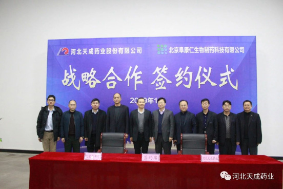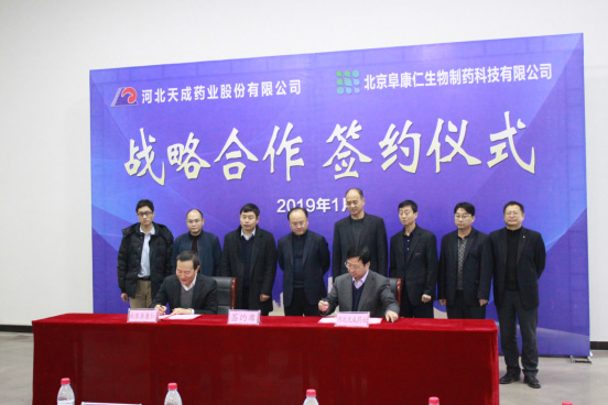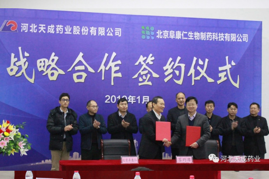 北京阜康仁法人王进京董事长与河北天成药业法人王振刚董事长签署
