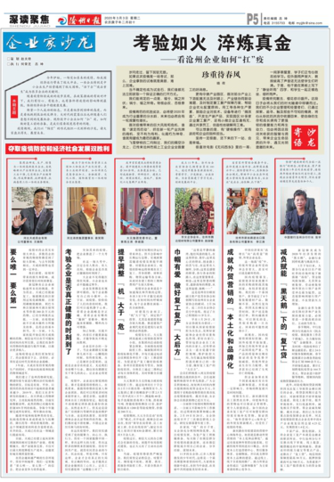 飞雪穿枝的二月刚过,我们的隔空沙龙上,已传来沧州市规上工业企业全面复工的好消息。
