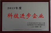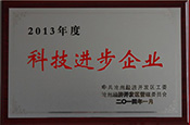 2014年荣获“2013年度科技进步企业” 荣誉称号