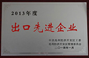2014年荣获“2013年度出口先进企业” 荣誉称号